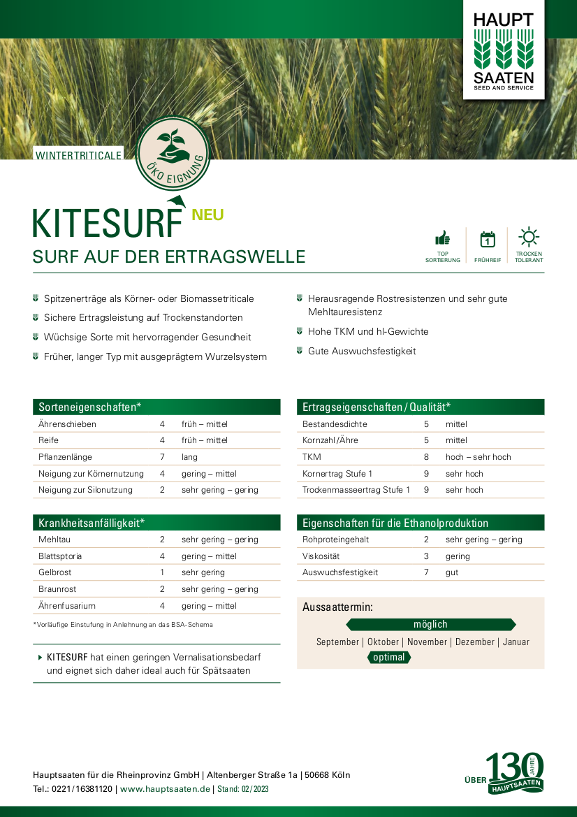 | Neigung zu Lager Körnernutzung | 4 | gering - mittel |