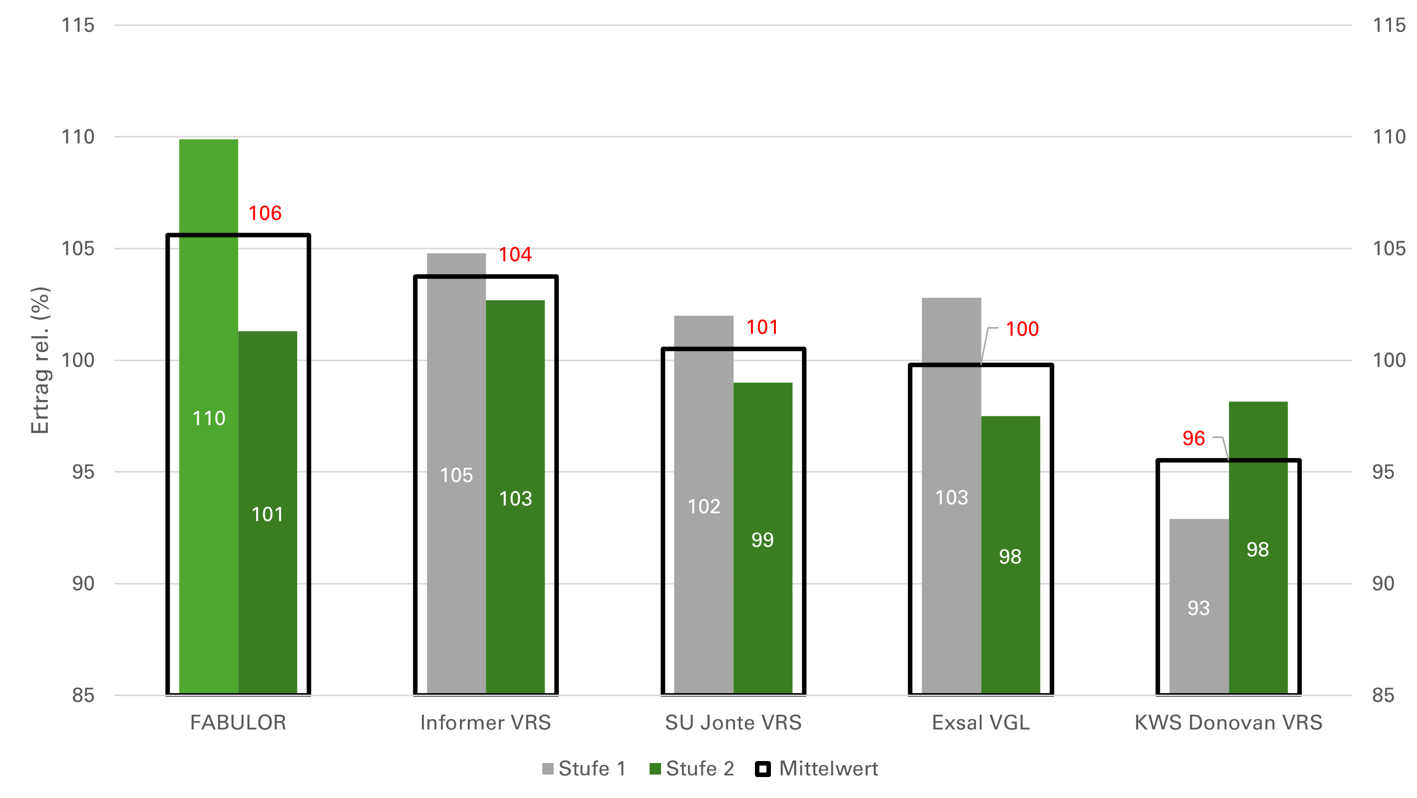 | Kornertrag Stufe 2 | 8 | hoch - sehr hoch |